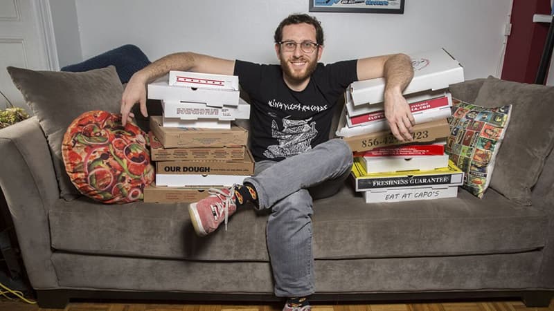 “All my stuff is genuinely handmade. We have a takeaway five nights a week so always have empty pizza boxes laying around the gaff. At Christmas, I like to put some Lynx Africa, a pair of socks, and a ten-pence mix in the box. I then put some red and green tissue paper in with ’em, slap some tinsel to the box, and stick ’em online for £15. Sometimes, I leave a pizza crust in there. Those who get a free crust are getting a freebie. Knowing you can get sumat for nowt make people want to delve into my box. The smell of a £3 margherita coming from the box makes you think of Christmas.”